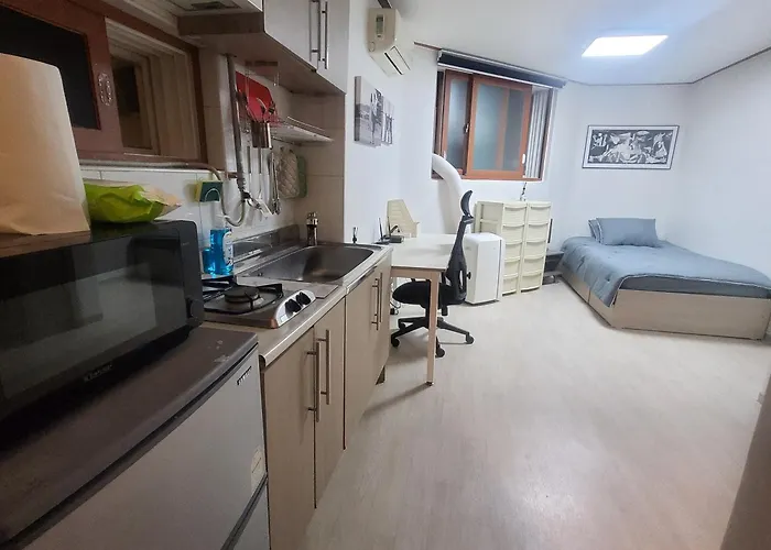 A mini-kitchen includes a refrigerator and a stovetop for you during the stay. Yongsan High School bus stop is in the vicinity of Newly Renovated Cozy Studio#9, and Noksapyeong tube station is nearly a 10-minute walk away.